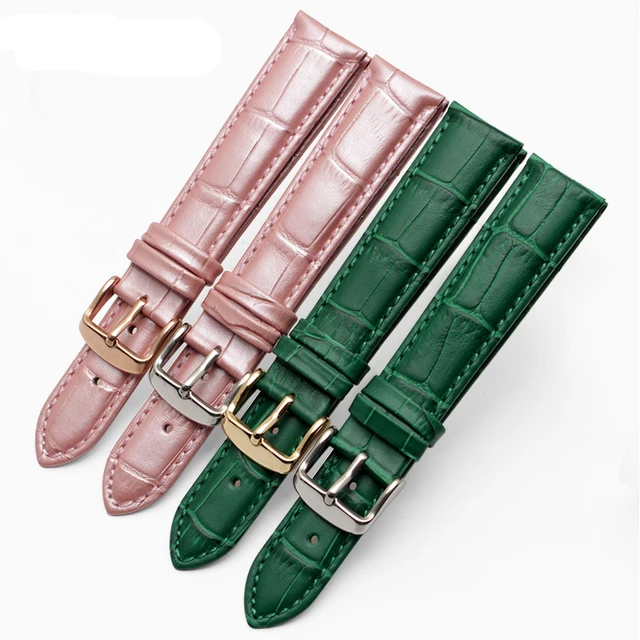 | [해외] 시계 밴드 정품 가죽 스트랩 16 미리메터 18 미리메터 20 미리메터 21 미리메터 22 미리메터 시계 액세서리 여성 높은 품질 핑크 녹색 시계 줄 |