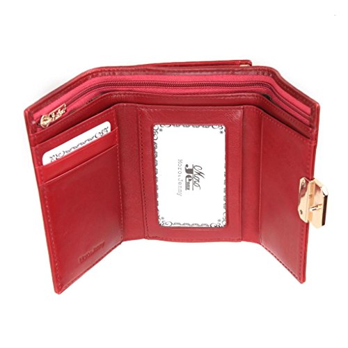 - Feature : Main Color: Purple/Orange/Deep Green/Green / Material: Genuine leather / Measures approximately:12.5H x8.5L x 3W / Closure: Clasp / Full length slit pockets for cash, important papers, event tickets, and receipts