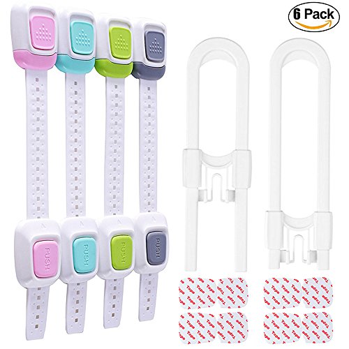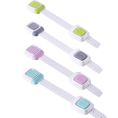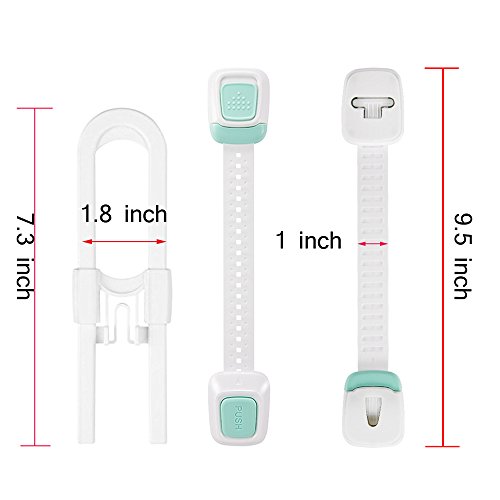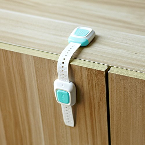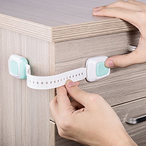 - Adjustable Strap and Latches System--Flexible,Adjustable Length Strap Works on Both Flat Surfaces and Around Corners.Latching System Keeps Even the Most Determined Baby out of Trouble while Allowing for Easy one-handed Access for Adults and Closes with the Simple Push of a Finger.