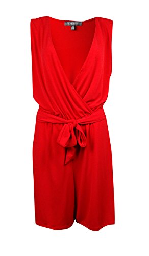 Product Description Romper features no lining, surplice V-neckline, inseam pockets, thread belt loops (belt included), jersey fabric, and pull-on style. 0