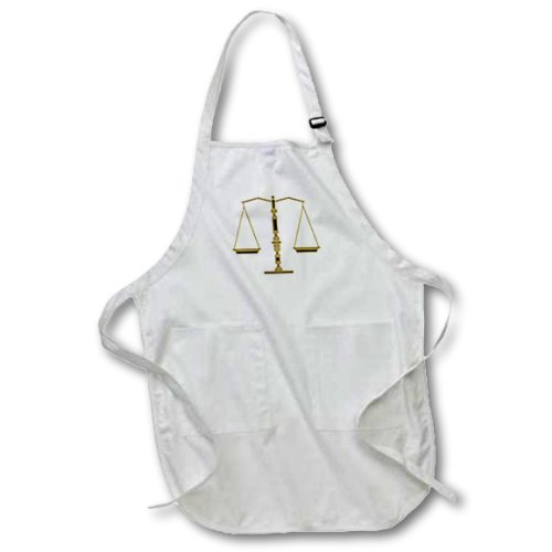 3dRose apr_165570_1 Elegant Black-Gold Scales of Justice-Full Length White Apron with Pockets, 22 by 30-Inch