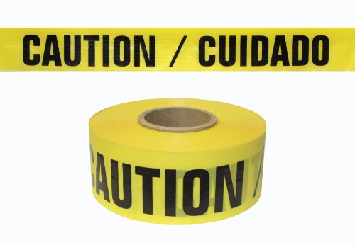 Presco BR357Y16-658 500' Length x 3" Width x 7 mil Thick, Polyethylene, Yellow with Black Ink Reinforced Barricade Tape, Legend "Caution" (Pack of 8)