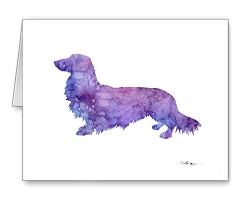 -. Feature : "Long Haired Dachshund" artwork by watercolor artist DJ Rogers.Long Haired Dachshund / Note card size is 4.25 x 5.5 inches / Matching white envelopes included. / Note cards are blank inside for your personal message. / Suitable for framing.