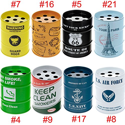 -. Feature : Oil Drum Shape Ashtray, Openable cover, Easy to Clean / Pen Holder: remove the cover then turn to a cute pen holder / Material: Stainless steel / Size: 7*10cm / Applications: home, office, gifts for family/friends