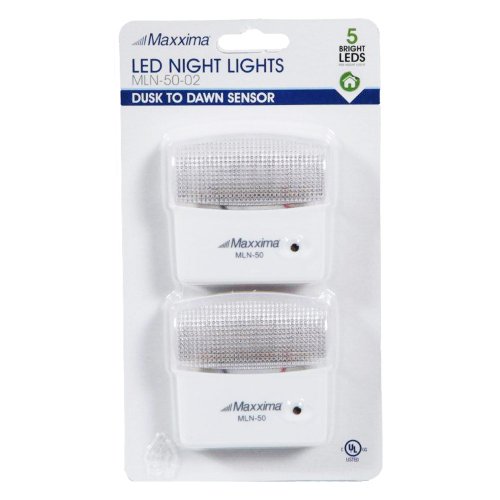 Maxxima MLN-50 5 LED Night Light With Dusk to Dawn Sensor, 25 Lumens Plug In (Pack of 2)