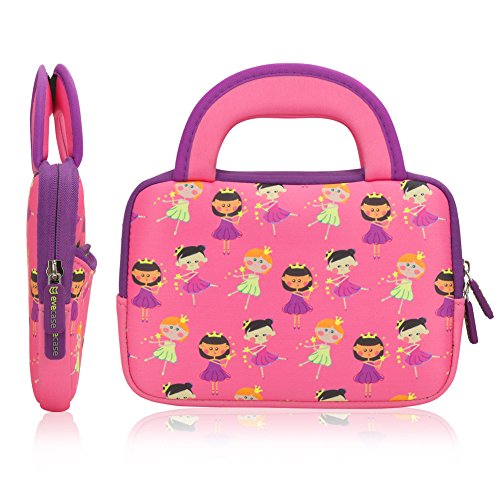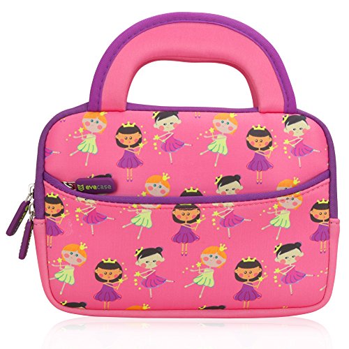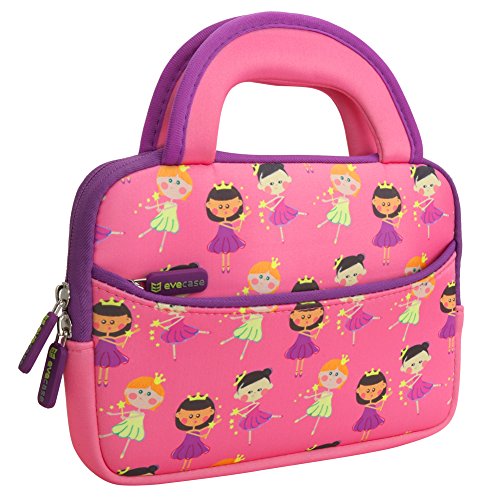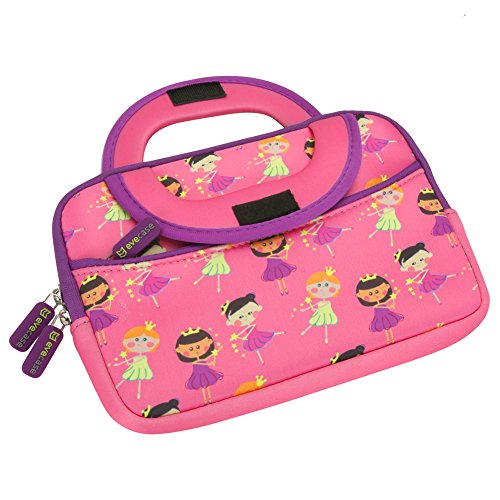 7 - 8 inch Kid Tablet Sleeve, Evecase Cute Fairy Tale Princess Themed Neoprene Carrying Sleeve Case Bag For 7 - 8 inch Kid Tablets (Pink and Purple Trim, With Dual Handle and Accessory Pocke