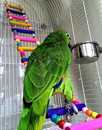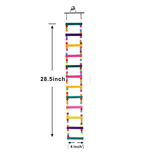 Doloburn Colorful Ladder Bird Toy 4 inchx30 inch, Flexible Ladders Wooden Rainbow Bridge for Parrots Pet Trainning