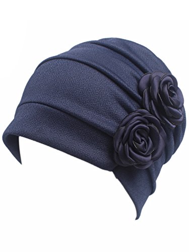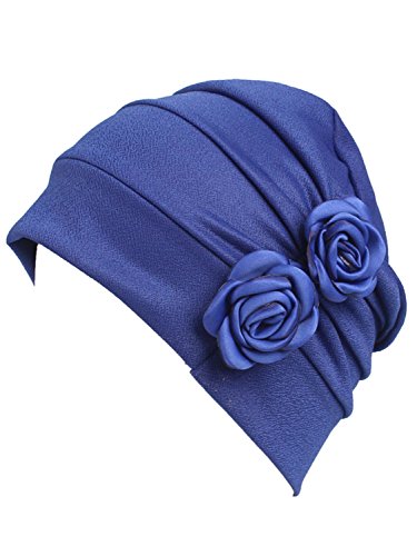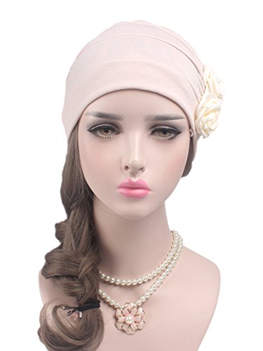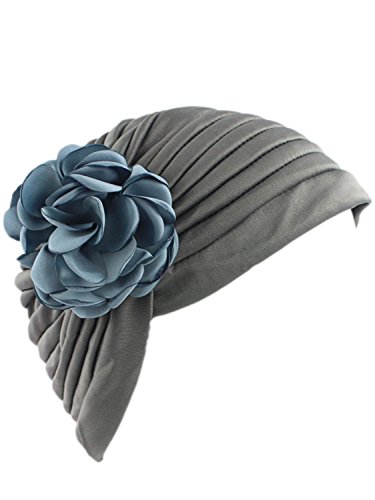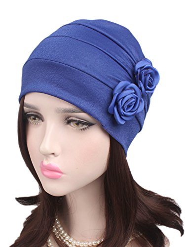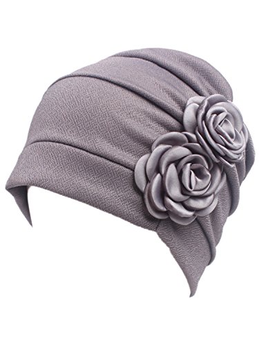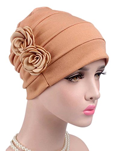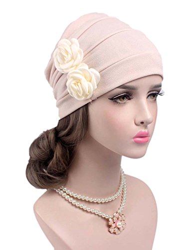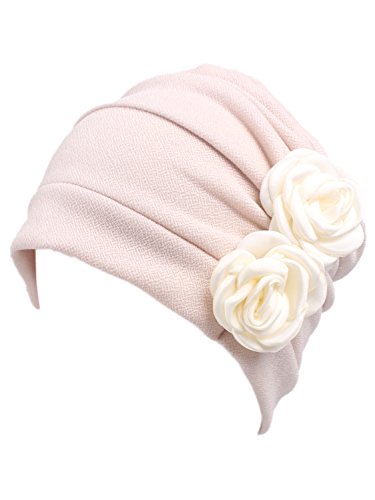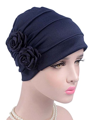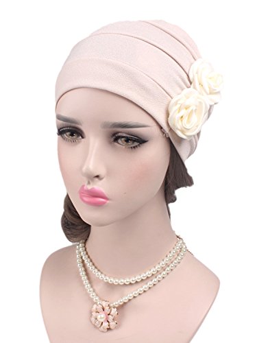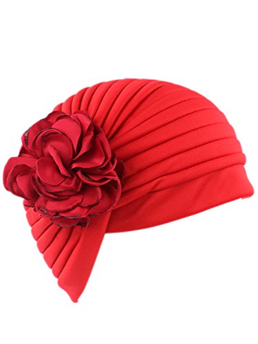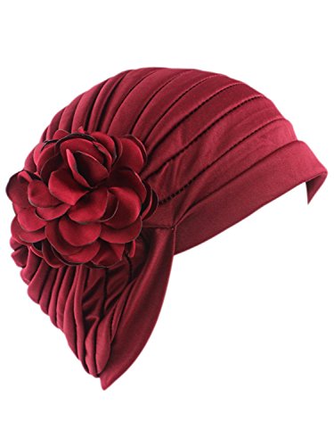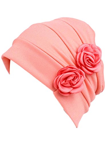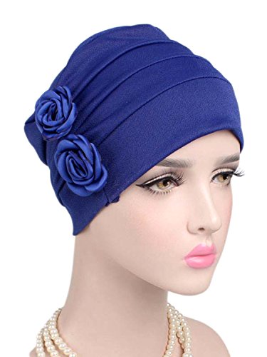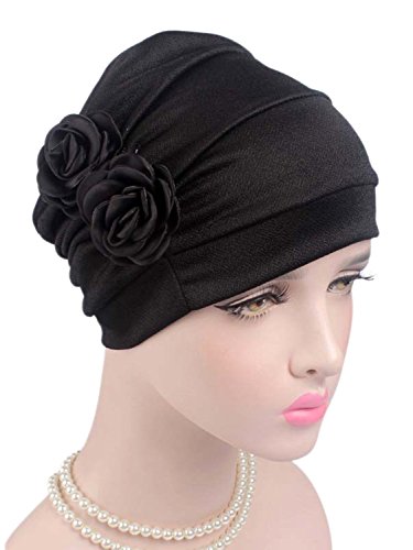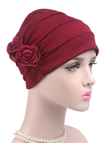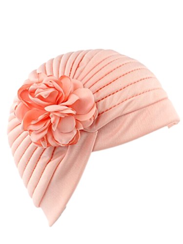 | (Clothink)/Accessories/Hats/DIRECT FROM USA/Clothink Ruffle Pleated Turban Headwear Chemo Cancer Muslim Beanie Hat With Rose Flowers |
