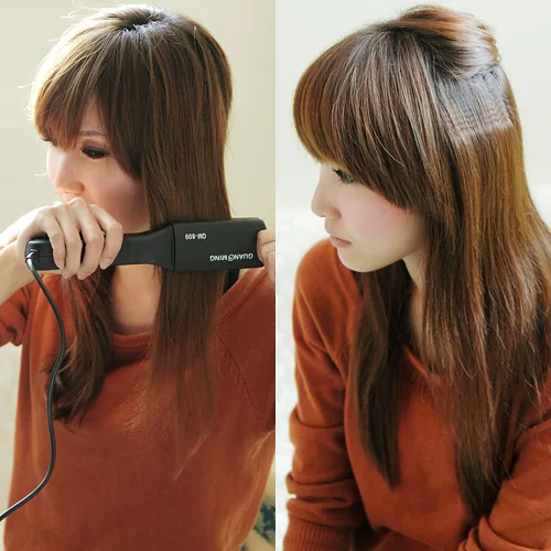 1.插上電源後,按上開關,紅燈開始亮後,髮片的部份就會開始發熱