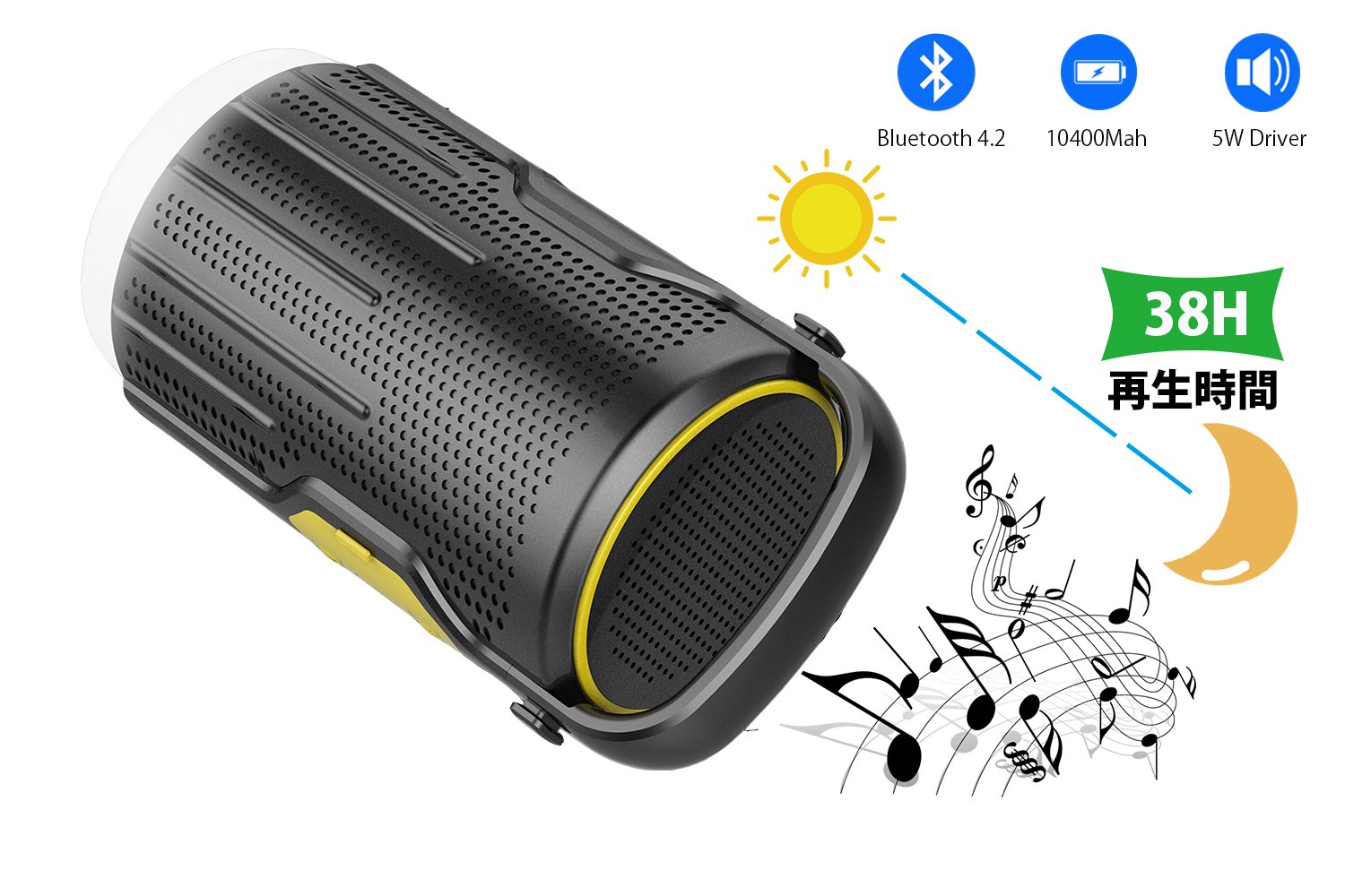 Music playback (with Bluetooth) Time: 38 hours