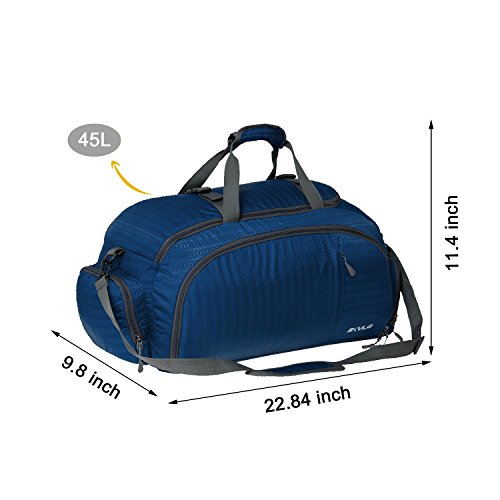 -. Feature : Material: Made of high density Nylon. Wear-resistant and rip-stop. Lightweight, fashion and elegant. / 3 ways of carrying: Duffle bag/shoulder bag/backpack. Two padded straps in the hidden compartment make this bag as a backpack . A detachable shoulder strap can easily turn the backpack into a shoulder bag. / Size and Structure : 58(L) *25(W) * 29(H)cm;0.65kg . 1 main body with a 2-way zipper' s U-shaped opening , 2 front zipper pockets , 1 inner pocket , 1 inner shoes compartment (it occupied main body space) , and 1 zipper bags at one end. / Lightweight and Comfortable : About 650g (45 L) . Easy to adjust the length of the straps and lock firmly. High quality two-way zipper goes smoothly. Thickening protective mat in bottom and side pockets, effectively protect your electronic products or valuables. / Buy now with confidence: If for any reason you are not satisfied with our product, we will provide professional return or exchange service for you.