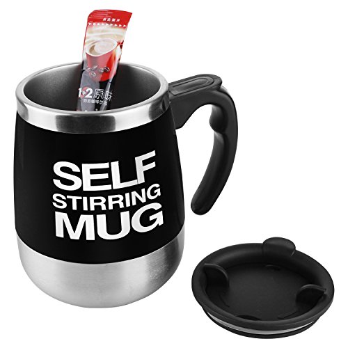 Self Stirring Travel Coffee Mug Stainless Steel Automatic Mixing Cup Black