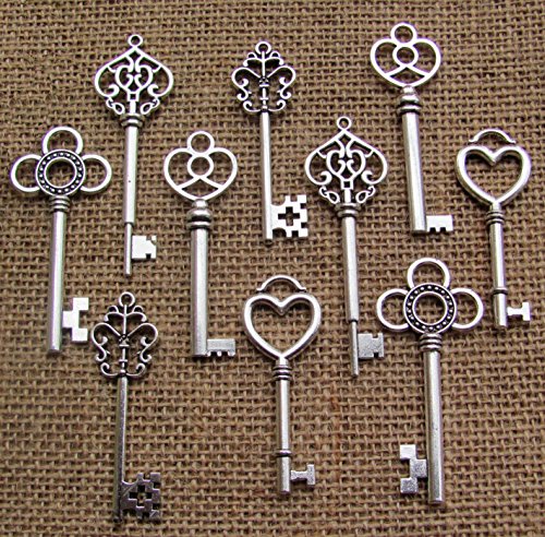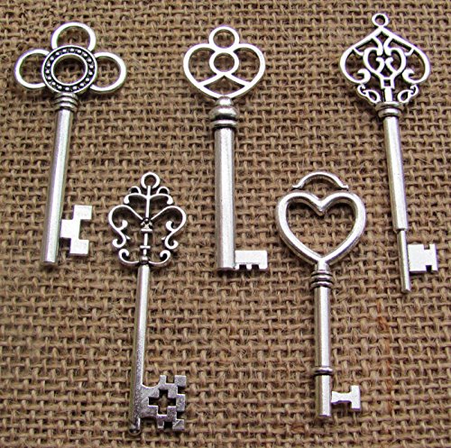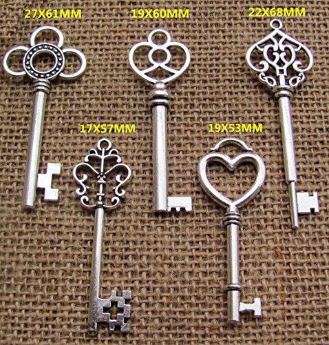 SL crafts Mixed Set of 50 Large Skeleton Keys Key charms in Antique Silver 53-68mm