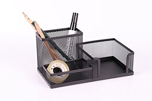 - Made of sturdy, mesh metal and a solid metal base, this one’ll take all the pens and rulers you can throw at it, keep it intact.