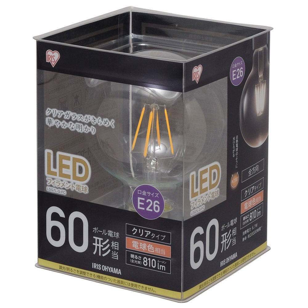 It is an LED filament bulb ball sphere type in which light spreads in all directions like an incandescent bulb.