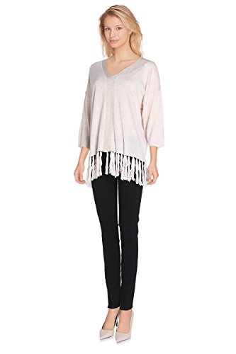 -. Title : Cherry Paris - Promo Top Pullover Aelia Ärmel 3/4 LOOSE Verarbeitung Fransen auf Unten und Detail Lurex in Kragen V