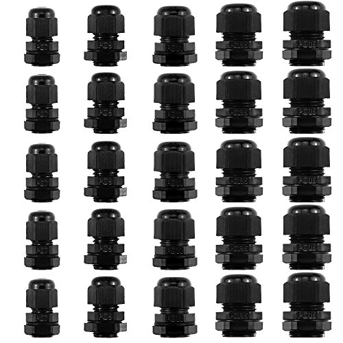 GiBot Cable Glands - 25 Pack Plastic Waterproof 3.5-13mm Cable Glands Joints Wire Protectors, PG 7/9/11/13.5/16, Black