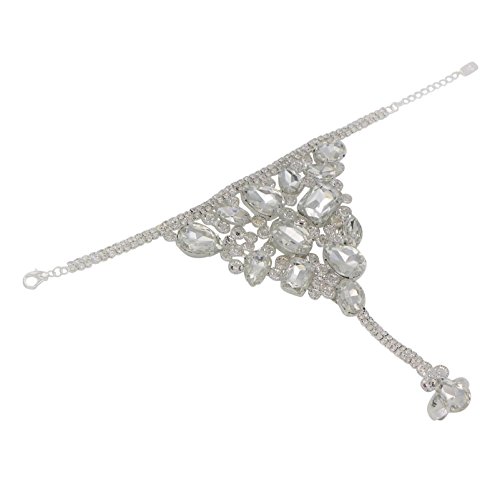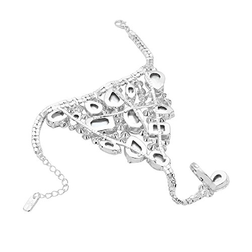 -. Feature : Hand chin made of large cut glass crystals in teardrop, marquise, oval and emerald cut shapes / 7.5 inch bracelet with a 2.5 inch extension chain, fits small to large wrists / Teardrop cut glass crystal ring, and adjusts up to a size nine / This fashion trending hand chain is great for weddings, prom, or special occasions / Packaged in a gift box