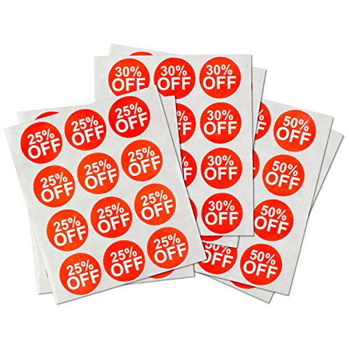 TUCO DEALS - 1" Round Retail / Sale (25%, 30%, 50% Off Discount) Stickers / Labels Bundle (3 Pack / 300 Labels Per Pack) - Red/White
