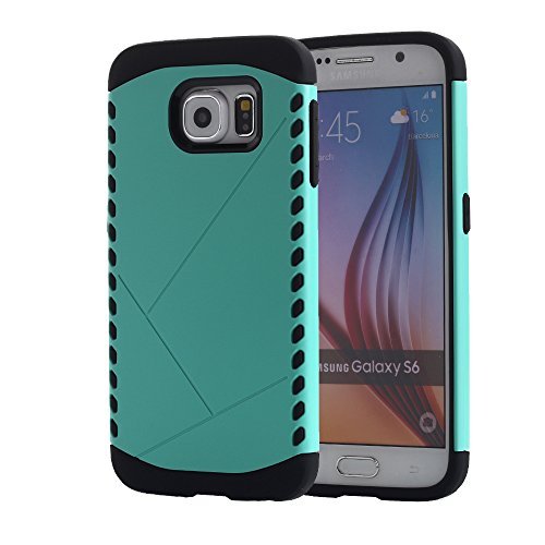 Galaxy S6 Case, PandawellTM 3-piece 3 in 1 Combo Hybrid Defender High Impact Body Armor Hard PC & Silicone Rubber Case Protective Cover for Samsung Galaxy S6 G920 with Screen Protector & Stylus (3 piece-Mint Green/Grey)
