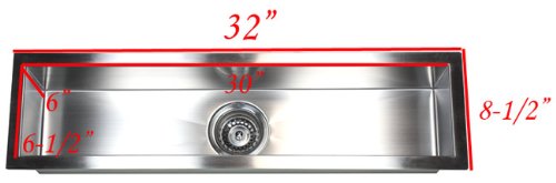 32 INCH Zero Radius Design Undermount Single Linear Bowl Stainless Steel Kitchen Bar Prep Island Sink (32 INCH) KKR-F3208