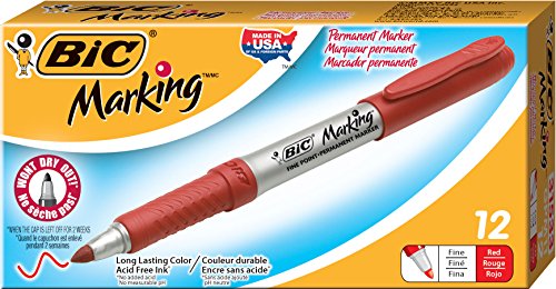 BIC Mark-It Permanent Marker, Fine Point, Red, 12 Markers
