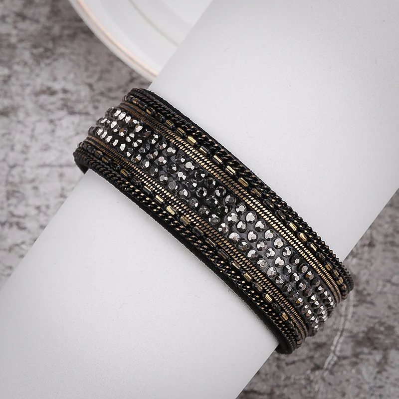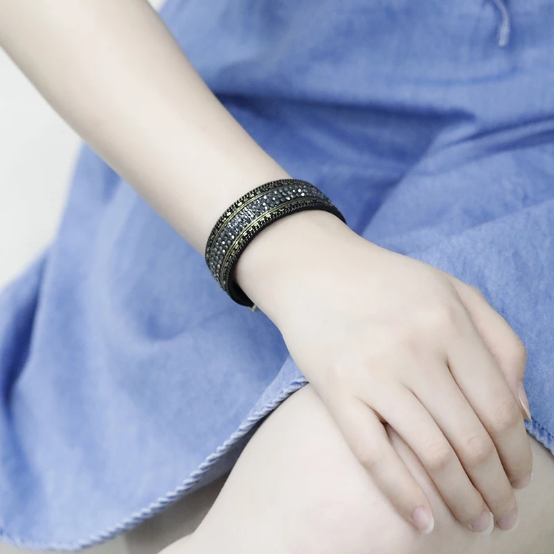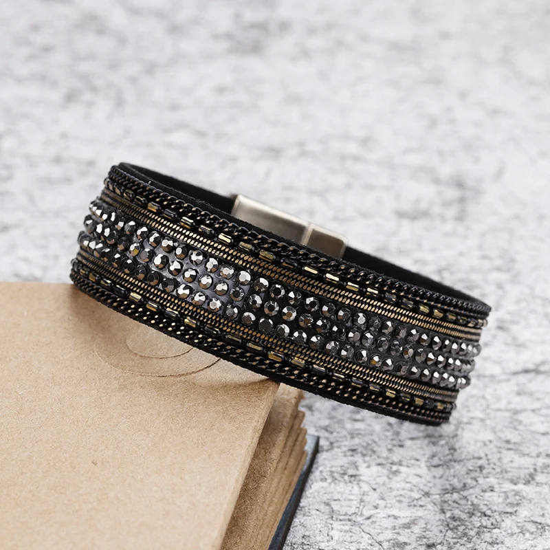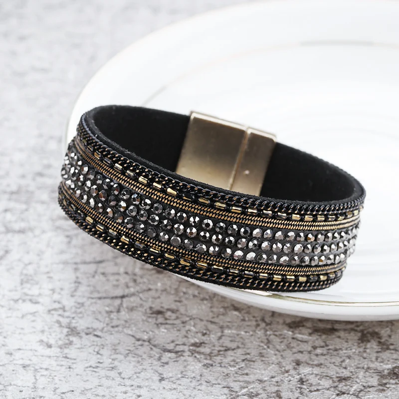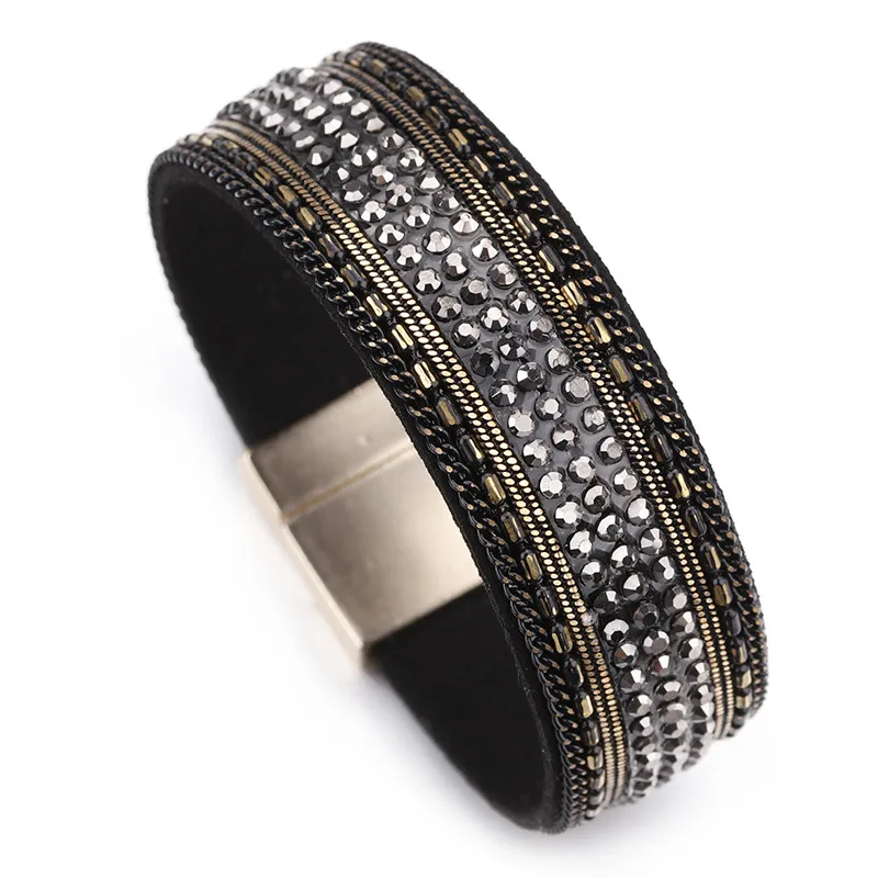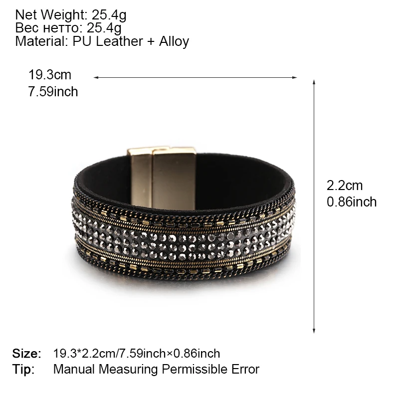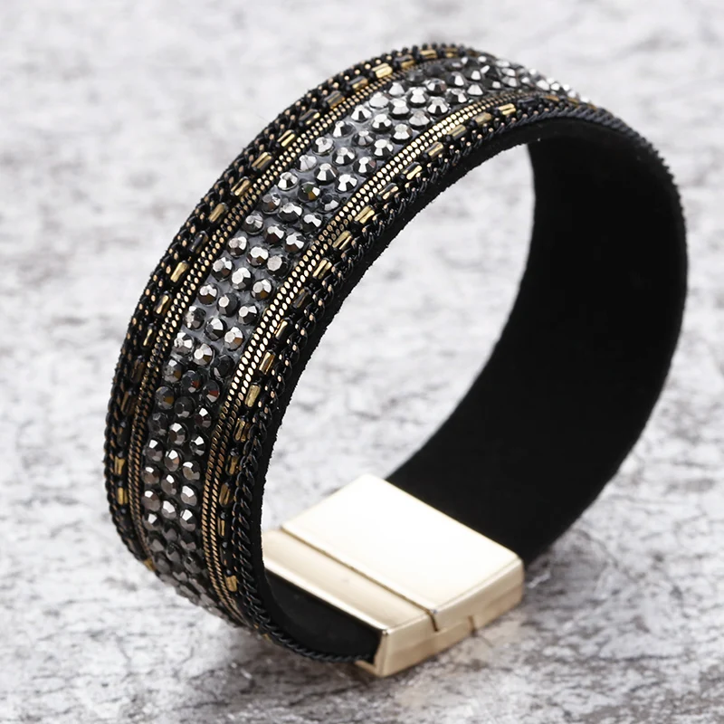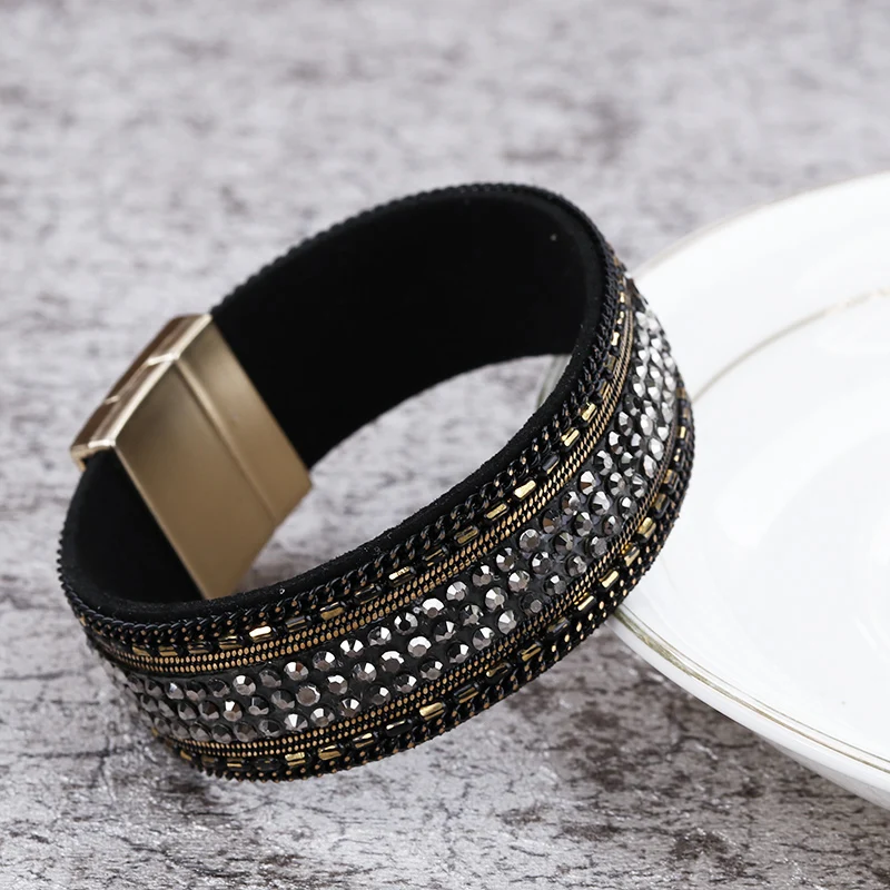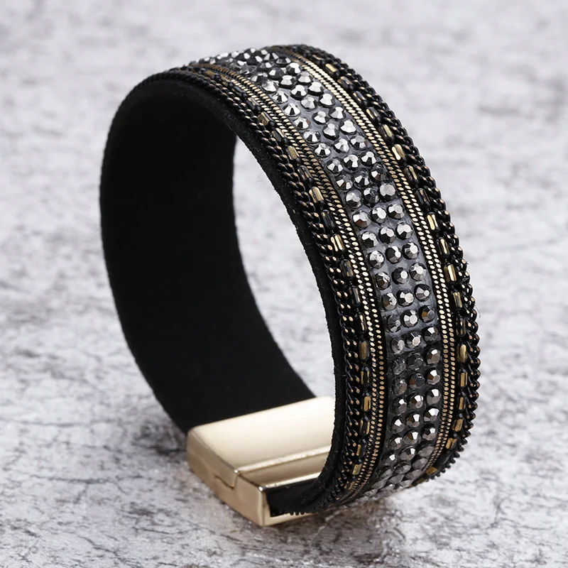 Fine Or Fashion:Fashion PU Leather Square Rhinestone Bangle