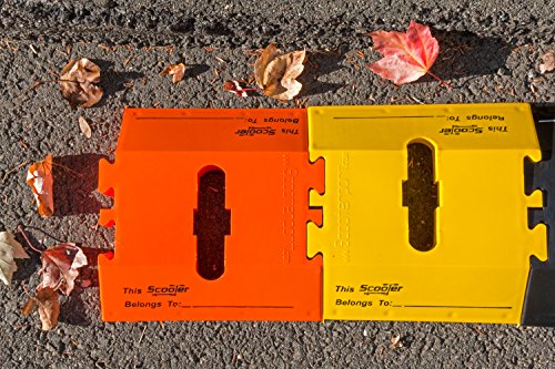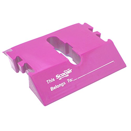 Interlocking Scooter Stand - Fits 95-110mm Wheels. Designed by a parent who was tired of tripping over their 3 kids' scooters, ScooterPorts were designed with safety, innovation, and fun in mind. Available in a variety of colors and featuring a practical and innovative interlocking design, ScooterPorts fit tightly together to create a continuous line of "parking spots" for your child's scooter and all their friends! Children often forget to fold up their scooters and put them away between play, which can create hazards for yourself, friends, relatives, and other kids. The solution is to take advantage of precious vertical space in your garage and driveway and provide a safe, stable spot for their ride. Not only are ScooterPorts functional, but they are also completely customizable. Hot stamped with the text "This Scooter Belongs To:_______", your child's ScooterPort can be decorated in a number of ways to show that the scooter in the stand belongs to them. Your child can customize their stand with their name, stickers, paint pens, rhinestones, and more, making them proud to park their scooter in its spot before pursuing their next adventure! ScooterPorts are designed to work with 95-110mm wheels.Feature