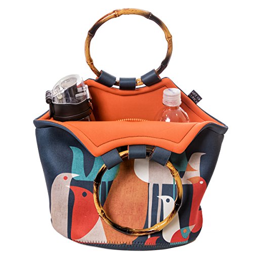 REUSABLE, ECO-FRIENDLY AND FASHIONABLE - Helps you look good while doing your part in protecting the environment by not throwing away paper and plastic bags. This DESIGNER LUNCH PURSE has a LARGER HANDLE with a BAMBOO LOOK that will fit over your arm or shoulder