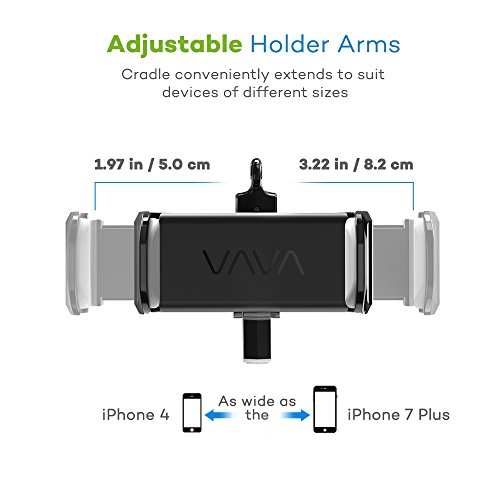 Adjustable Holder Arms: Cradle supports extend from 1.97 in / 5.0 cm up to 3.22 in / 8.2 cm to suit both smaller and bigger devices, from the iPhone 4 to the iPhone 7 Plus