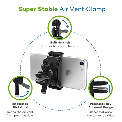 Stable Air Vent Clamp: Built-in knob to easily adjust the clasp; VAVA’s patented design ensures the clip fully adheres onto the air vent blade; kickstand prevents the air vent from pointing down