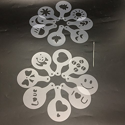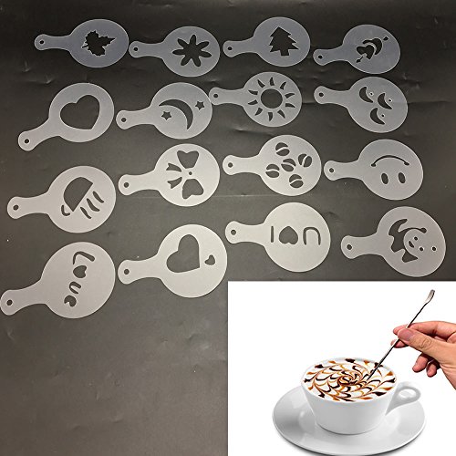 (HUELE)/Kitchen Dining/Cookware Baking/DIRECT FROM USA/HUELE 17 IN 1 Coffee tool 16 Pcs Cappuccino Coffee Barista Stencils Template Strew Flowers Pad ...