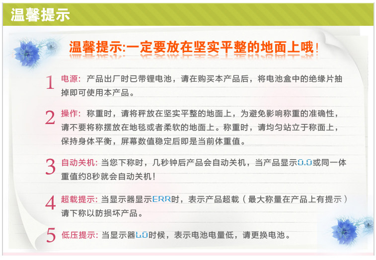 Weighing range: 5 ~ 180kg