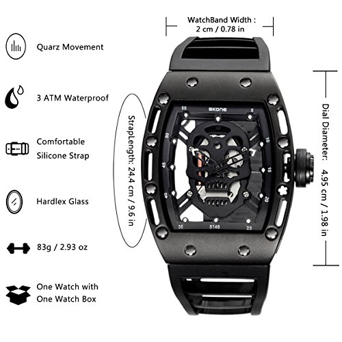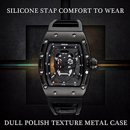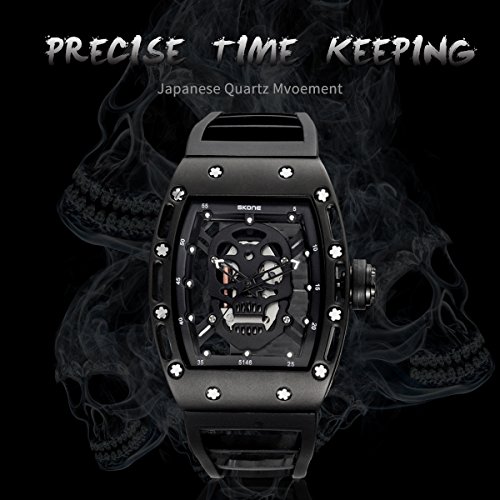 Unique and Cool Design: Fashion Sports Casual style watches, punk rock skull watch features with skulls in the dial, very fashion for all occasions, especially for Halloween Gift , best gift for men.