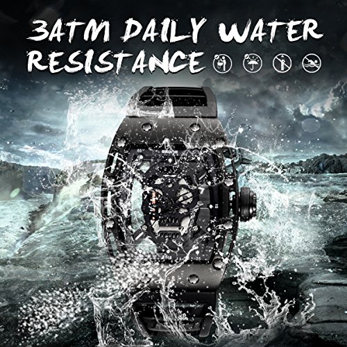Waterproof for Daily Use:Water resistant to 3 ATM, withstands rain and splashes of water, Please DO NOT press any buttons in the water or wear this watch for longtime underwater activities