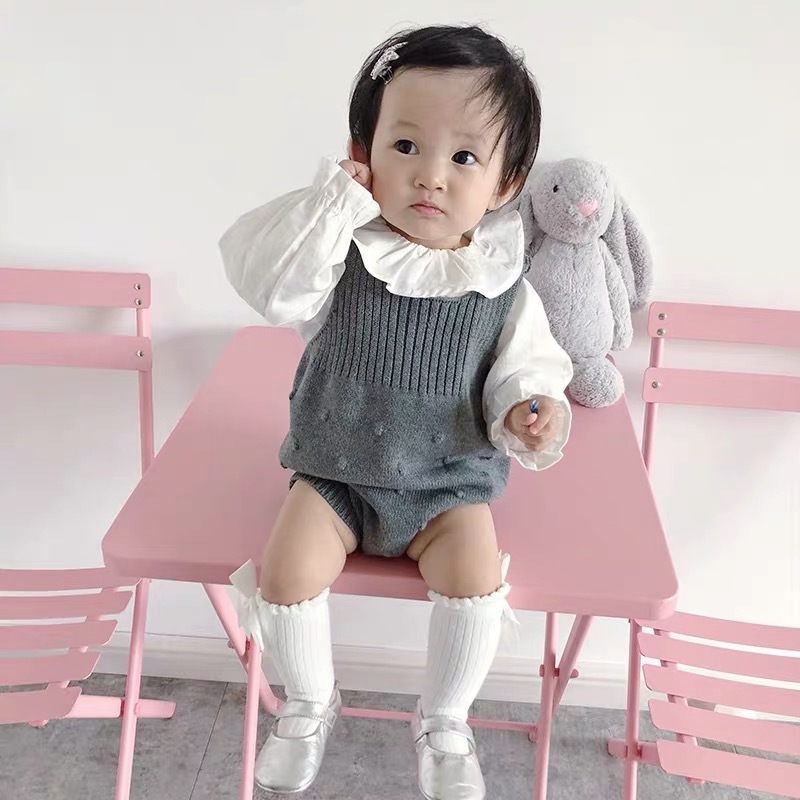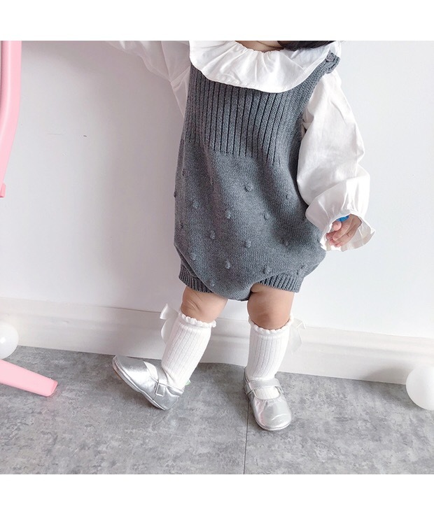 ぽんぽんがたくさん付いていてとってもキュートなニットロンパースです。表紙のモデルちゃんのような0?2歳児にお勧めなので 60 70 80 90 相当のサイズを入荷しています。