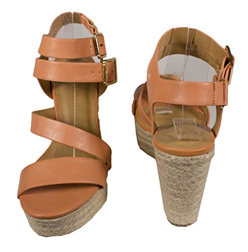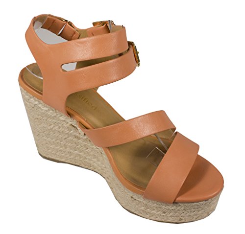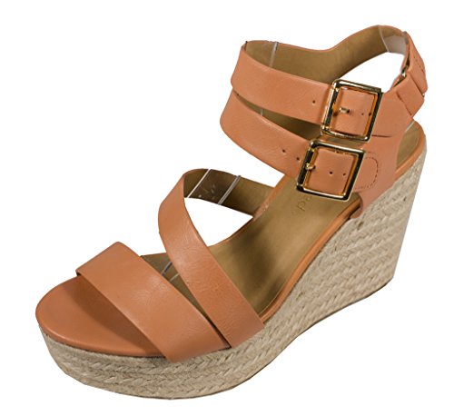 (City Classified)/Women's/Sandals/DIRECT FROM USA/City Classified Women's Jus tina Dual Buckle Espadrille Platform Wedge Sandal in Salmon Leatherette