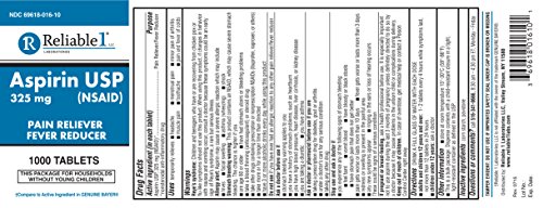 (Reliable)/Health Care/Medications Treatments/DIRECT FROM USA/Reliable 1 Aspirin USP 325 mg (NSAID) 1000 Tablets (1 Bottle)