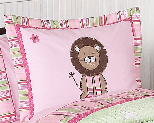 Sweet Jojo Designs Pink and Green Jungle Friends Girls Pillow Shams
