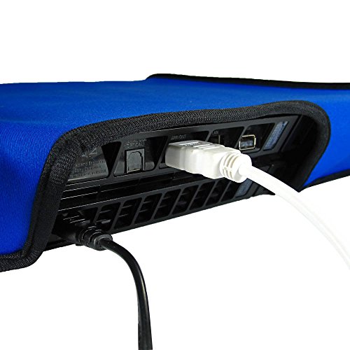 Speicially designed for the Sony PlayStation 4, protect your console from dust, ultraviolet, shock, liquids (Splashing), dirt, pet hair; made of neoprene, soft touch feeling,and flannel inside to protect the glossy surface of your console perfectly; Back cable panel cut design allows not to remove cables while using!