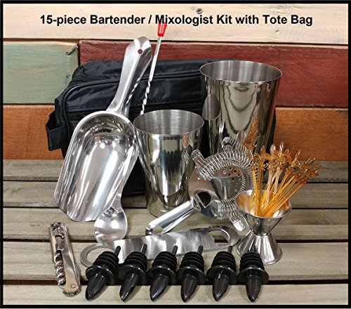 -. Title : 15-Piece Bartender Kit / Mixologist Set with Tote Bag w/Signature Cocktail Picks