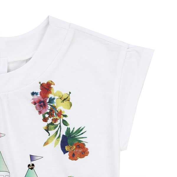 상세설명-시원한 소재감의 롱티로 앞쪽에 플라워 나염이 크게 들어가 더욱 시원해 보이는 티셔츠입니다.