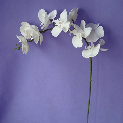 WELMAY 39.3'' Artificial Butterfly Orchid Flower PU Latex Real Touch Phalaenopsis Wedding Home Decoration Floral Pack of 6 (Cream)