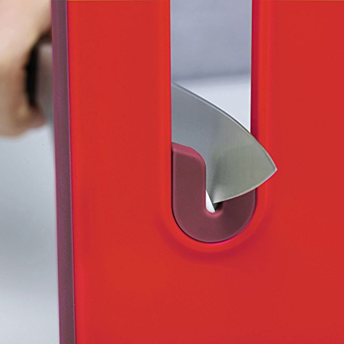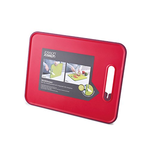 Joseph Joseph Chopping Board with Integrated Knife Sharpener, Small, Slice and Sharpen, Red