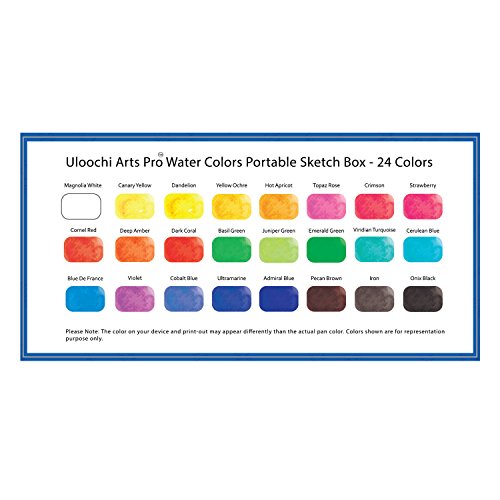 24 ASSORTED AQUARELLE COLORS IN HALF PANS - Watercolors of the highest quality with an elevated concentration of finely ground top permanence rating and durability pigments, composed for easy and smooth blending and creating a wide and rich assortment of colors and shades, are supplied with a universal color palette