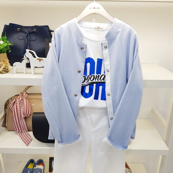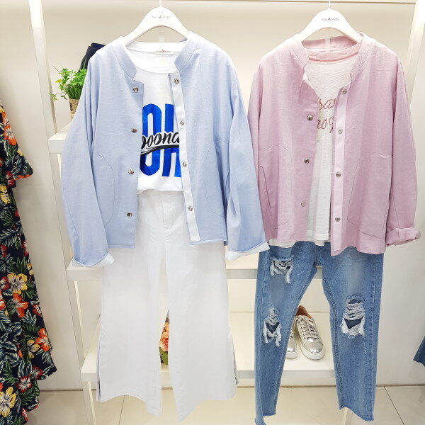 차이나 카라가 예쁜 린넨 숏자켓 입니다파스텔 색상도 이쁘고 전체적 핏은 일자핏으로 원단도 고급스러워요
