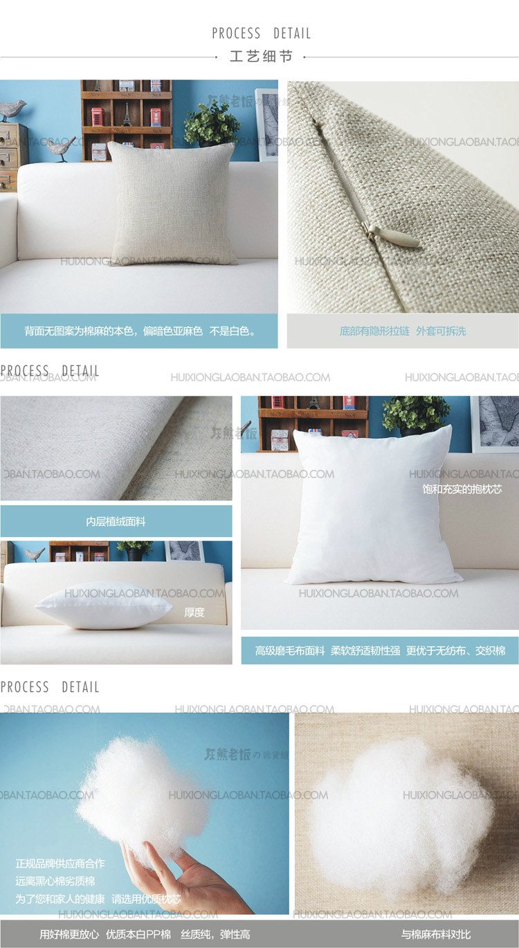 面料: 100%纯天然出口重磅棉麻 包装: OPP外袋+枕芯抽真空塑封