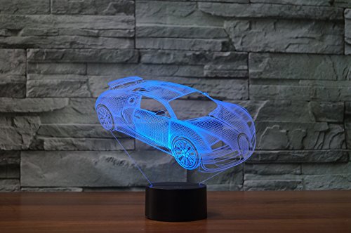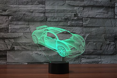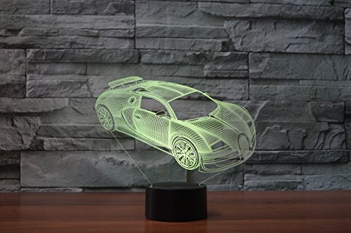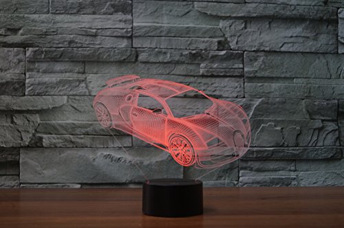 Studio : Fding Publisher : Fding Binding : Kitchen Product Description The Car 3D LED Illusion Lamp is a combination of art and technology that creates an optical 3D illusion and plays tricks on the eyes. From afar, you will see the design, but as you get up close, you see a thin acrylic glass sheet that's completely flat. It's bound to dazzle and impress your guests while always lighting up the room and your lives. Perfect for displaying in your bedroom, living room, office, as a night lamp or any way you want to use it. Description: Material: Acrylic ABS Voltage: 5V Power: 0.5W Switch Mode: touch switch Product Weight: 0.4KG(14.10ounce) LED Life: 10,000 hours Base: 3.43*3.43*1.69 inches Product Size: 10.08*6.42*3.43 inches Colors: Red / Green / Blue / Yellow / Cyan / Purple/ White,pick a single color or have colors cycle Touch button: Press one time, one color light up, press it again, it turns off. Press it thirdly, another color light up Automatically color changing mode: Press the touch button to last color, then press it again, auto color changing