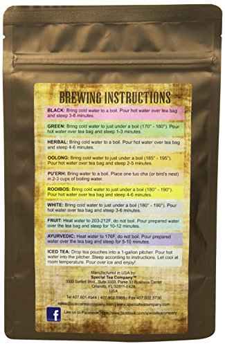 -. Binding : Grocery -. Brand : Special Tea -. EAN : 0852667690991 -. Feature : Loose Leaf Tea / akes approximately 12 cups of tea / Each packet is hand packed in the USA. / Premium tea leaves have all their essential oils intact, so the flavor, quality and health benefits are maintained. -. Label : Special Tea -. Manufacturer : Special Tea -. NumberOfItems : 1 -. PackageQuantity : 1 -. ProductGroup : Grocery -. ProductTypeName : GROCERY -. PublicationDate : 2014-06-29 -. Publisher : Special Tea -. ReleaseDate : 2014-06-29 -. Size : 1 Ounce -. Studio : Special Tea -. Title : Special Tea Fruits Tea Black Iced Tea, 1 Ounce -. UPC : 852667690991