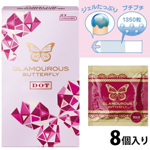 ・コンドームの適正な使用は、避妊に効果があり、エイズを含む他の多くの性感染症に感染する危険を現象しますが、 100%の効果を保証するものではありません。コンドーム コンドーム 5箱セットでお買い得! さらに使い切りラブローション4包プレゼント中! 【ジェクスコンドーム】つぶつぶ☆ラグジュアリーなキルティング模様のパッケージ! 女性の為に考えた本格コンドーム。 恋するハートをつめこんだパールホワイトの箱。 キャバ嬢500名にアンケートを実施、そこから誕生したデザインです。 パッケージは、高級バッグのようなキルティング模様でとってもオシャレ。 高級感と可愛さ、両方をそろえた 魅力あふれるコンドーム。 優れたフィット感のラテックス製で、どきどきしたい2人の恋に1350粒の凹凸加工があることが特徴です。 ナチュラルタイプ、ジェルトップ加工がされていて、潤いゼリーがたっぷり出てきます。 ●商品名:グラマラスバタフライ ドット ●製造:ジェクス株式会社(日本製) ●1箱8個入  ●ピンクカラー ●優れたフィット感のラテックス製 ●1350粒の凸凸加工 ●ナチュラルタイプ  ●ジェルトップ加工 ●医療用具許可番号:220AKBZX00115000号 ●1箱定価¥1575 20mlパウチローション4包プレゼント中。 安心の梱包 痛がる 挿入時に痛くない 安心梱包 完全 目隠し わからないように